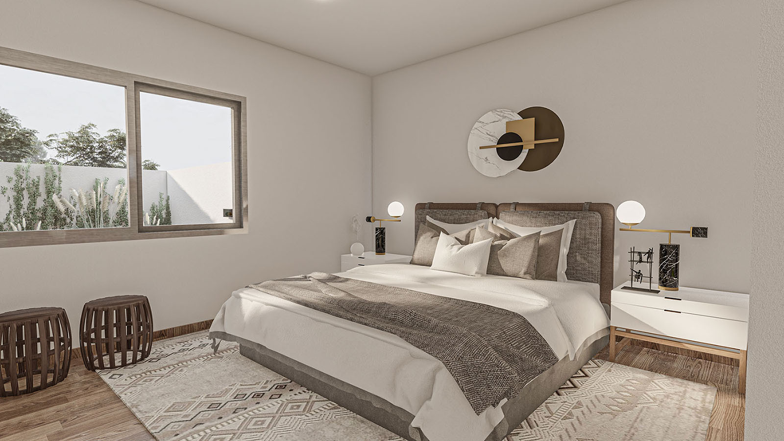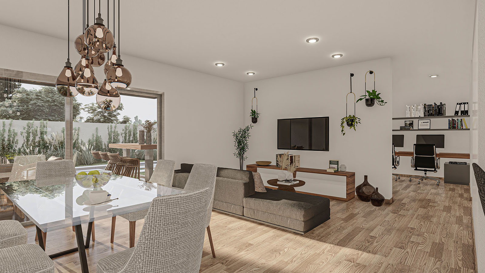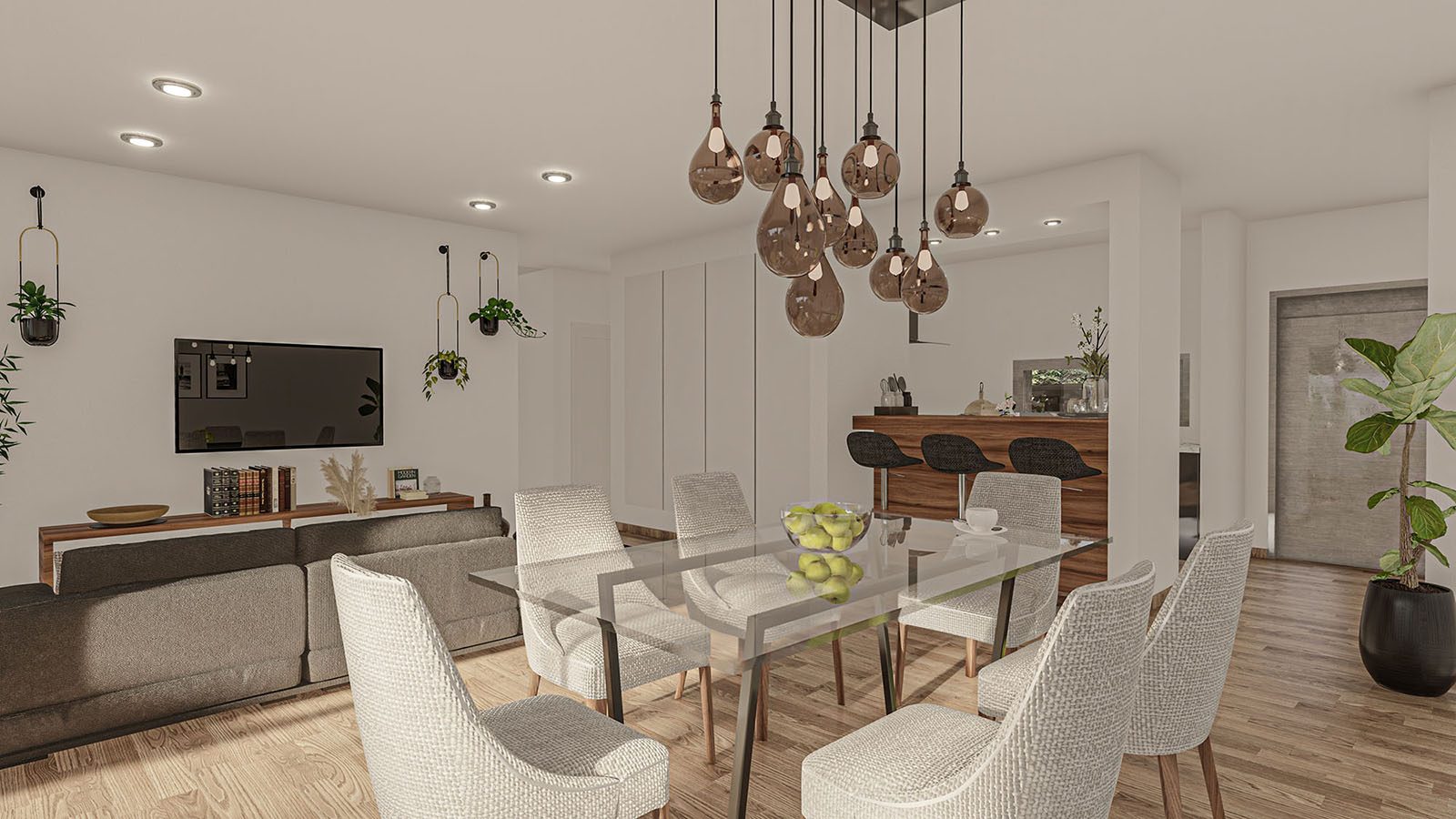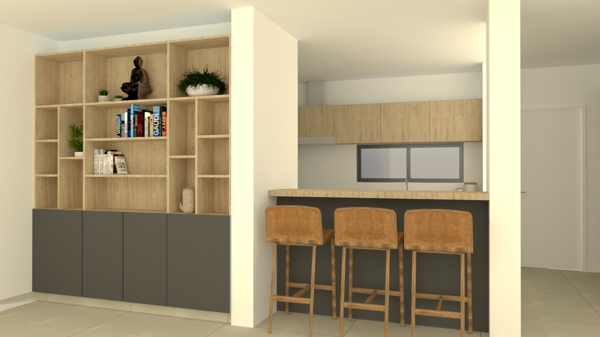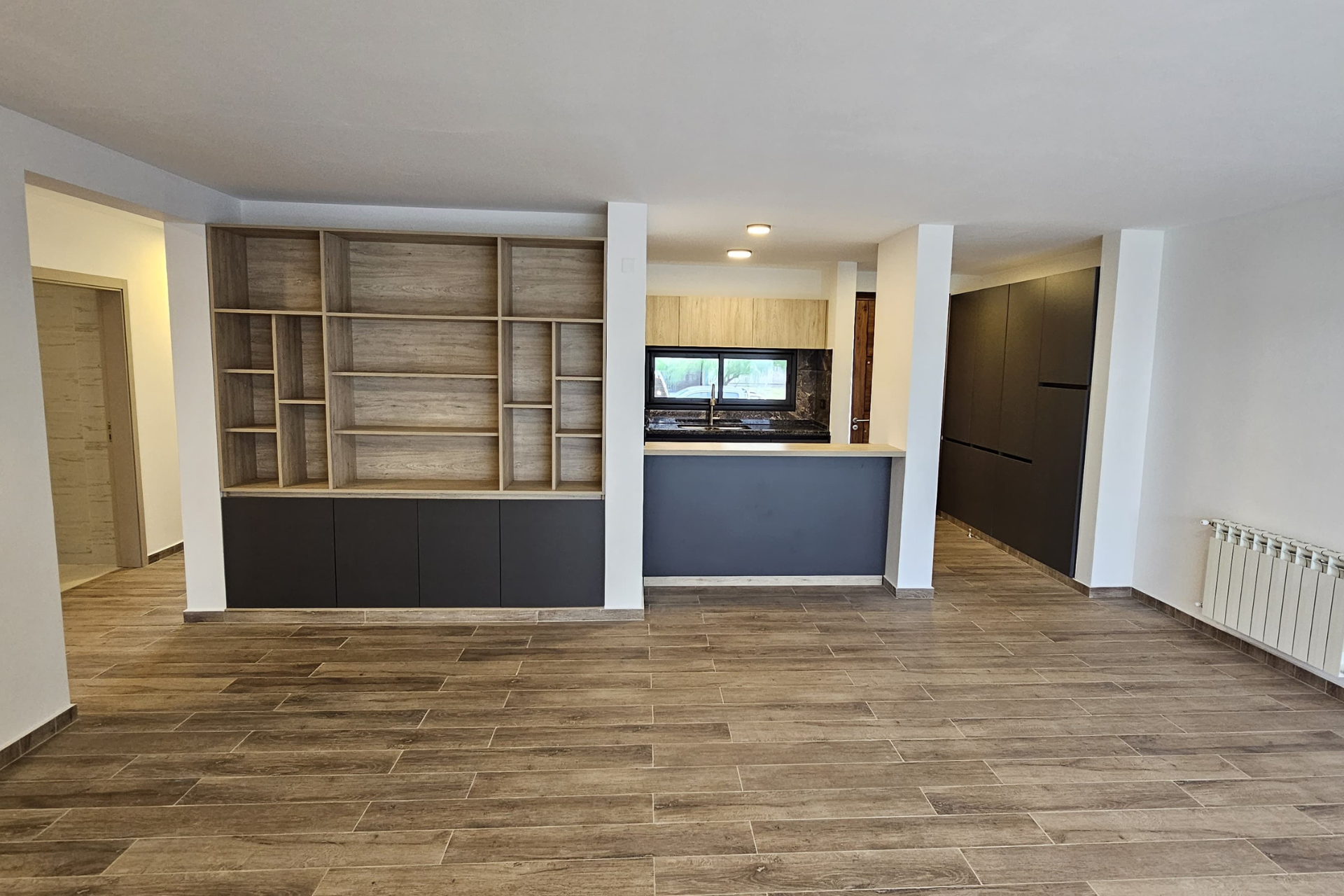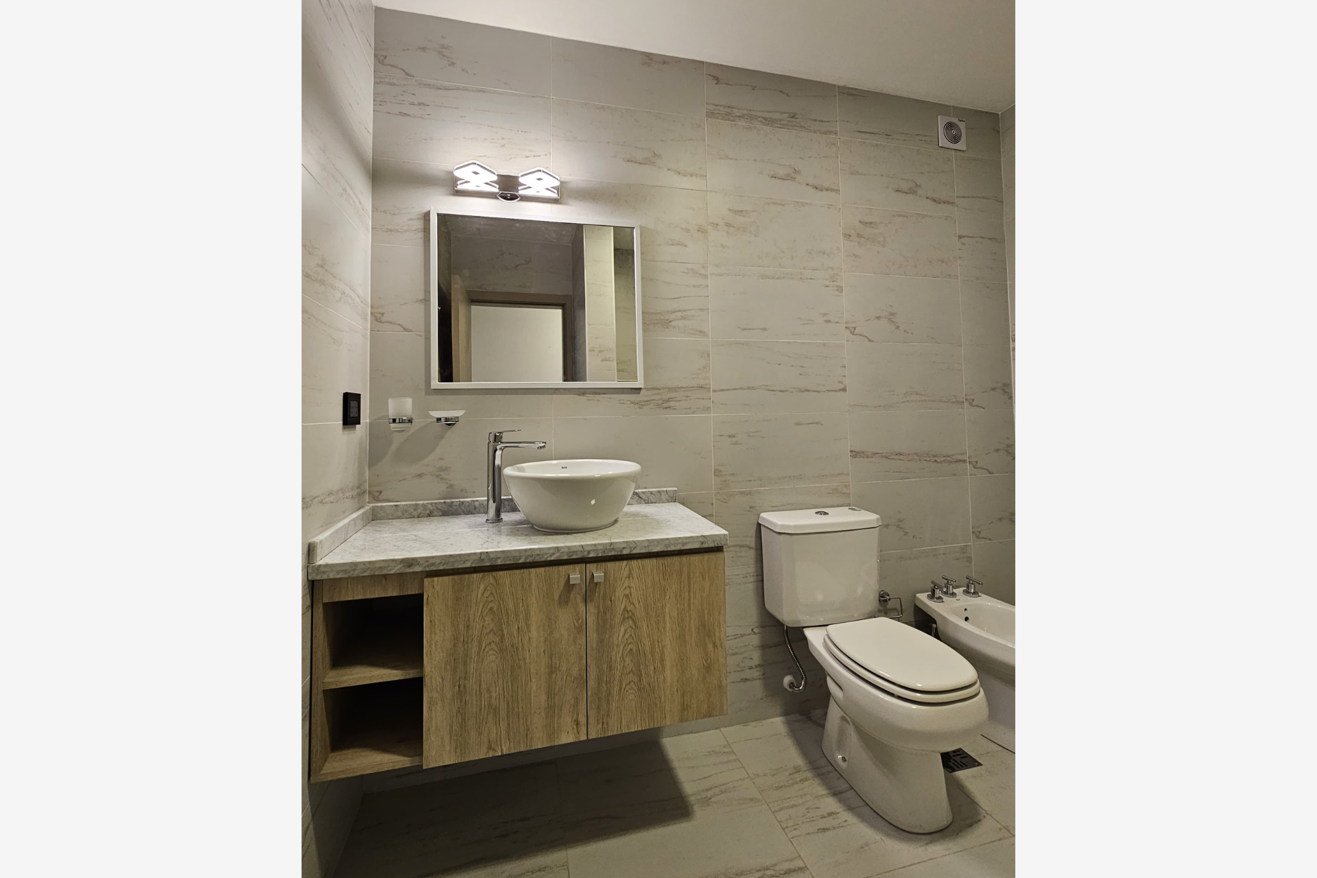 Una vivienda elegante y contemporánea que combina materiales de alta calidad y un diseño funcional. El interior cuenta con pisos de parqué de madera, que aportan calidez y sofisticación a los espacios. La cocina se destaca por una mesada de mármol oscuro, creando un contraste armonioso con el resto del ambiente.
