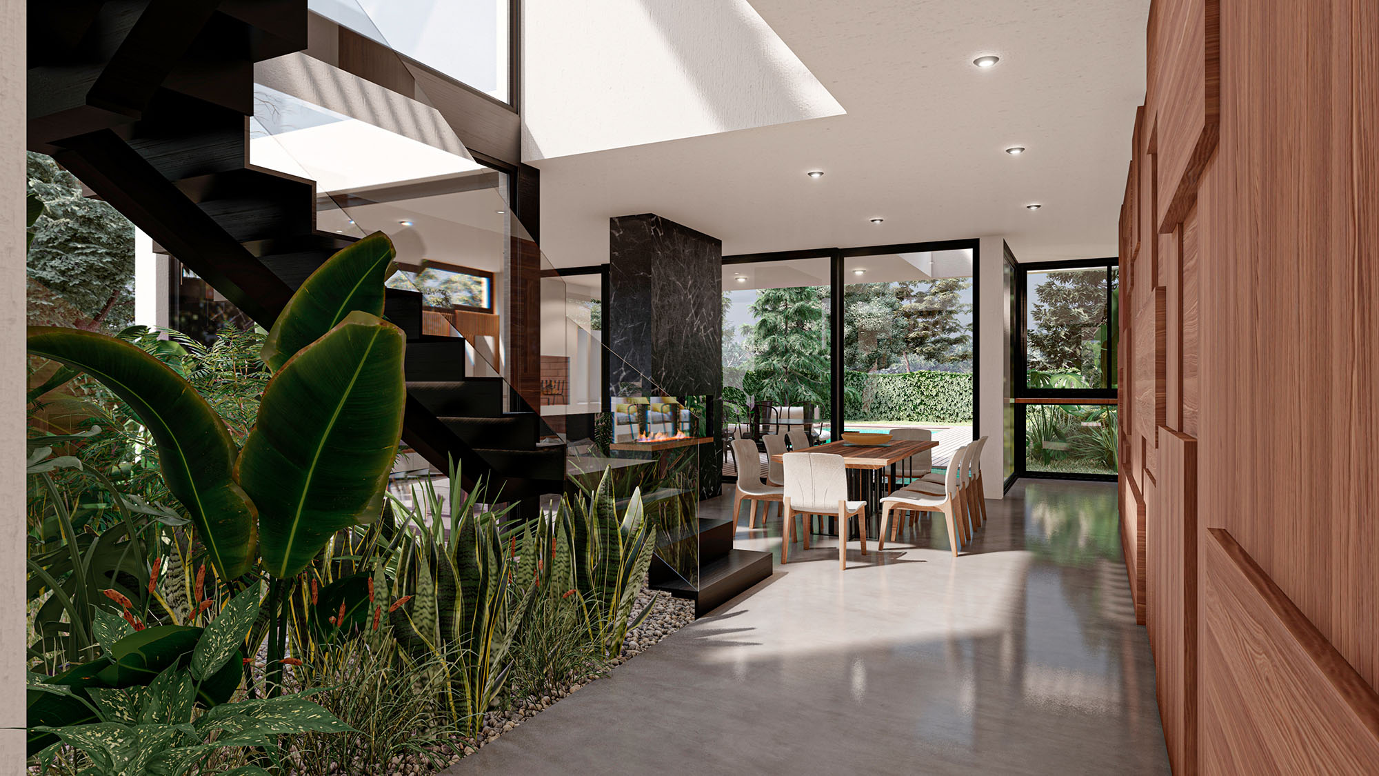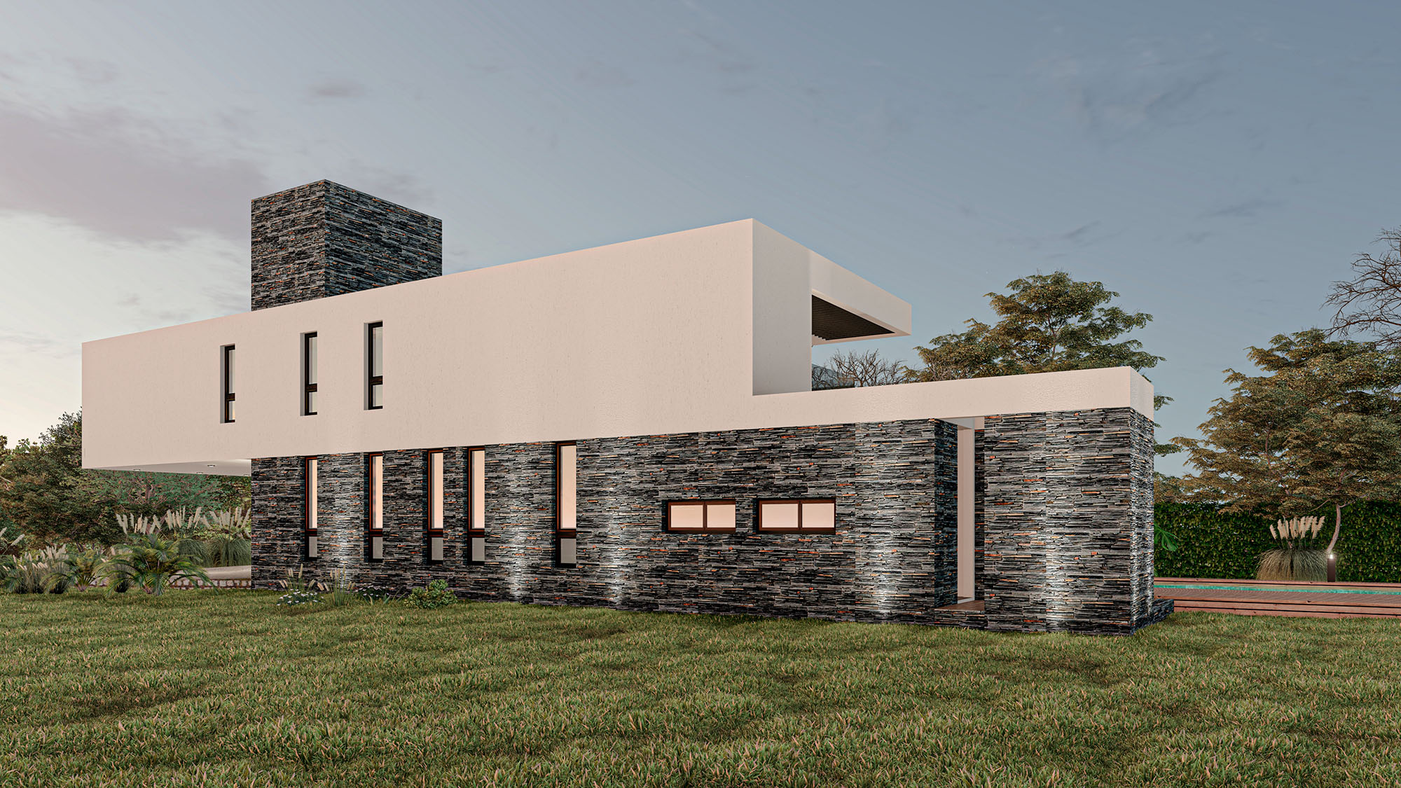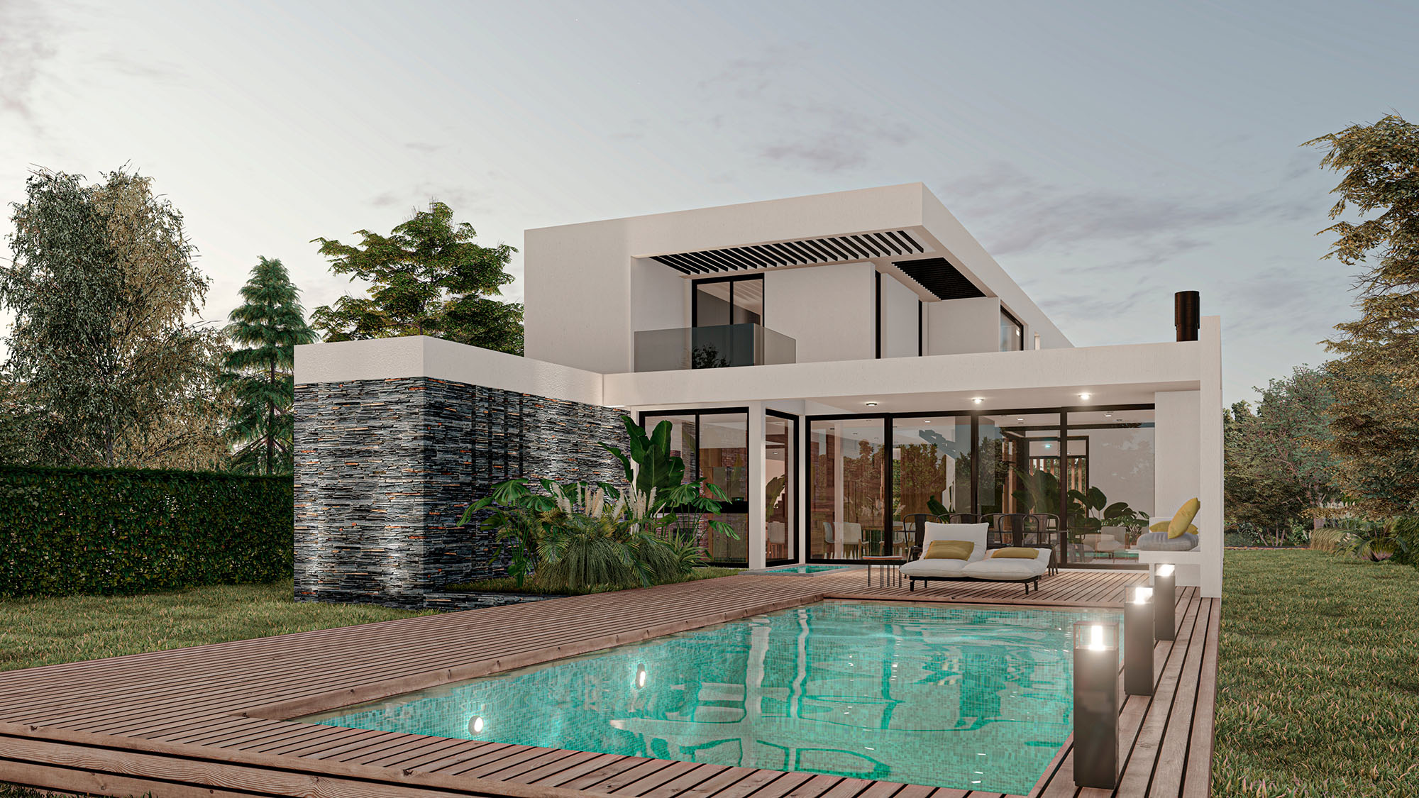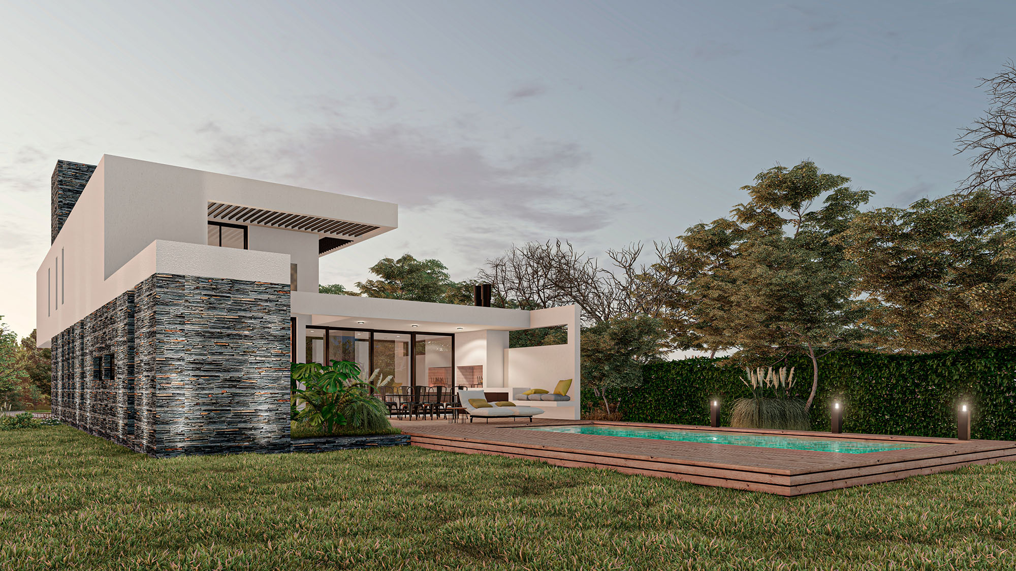 Casa VMX tiene amplios espacios de cocina, comedor, living, dormitorios, y demás. Cuenta con patio trasero, piscina, terraza en la planta alta.