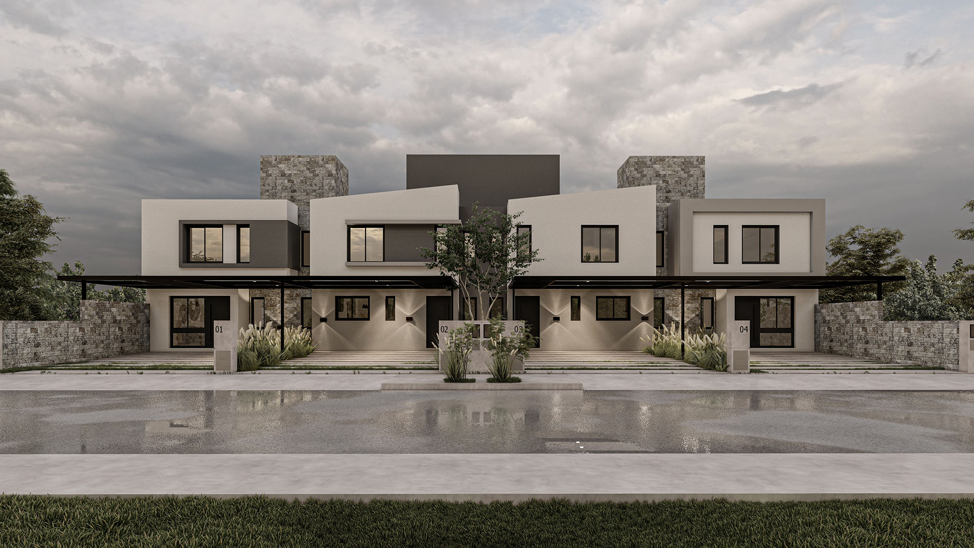 Se trata de 2 duplex con 4 viviendas. Cada una de ellas cuenta con 3 dormitorios y 3 baños.