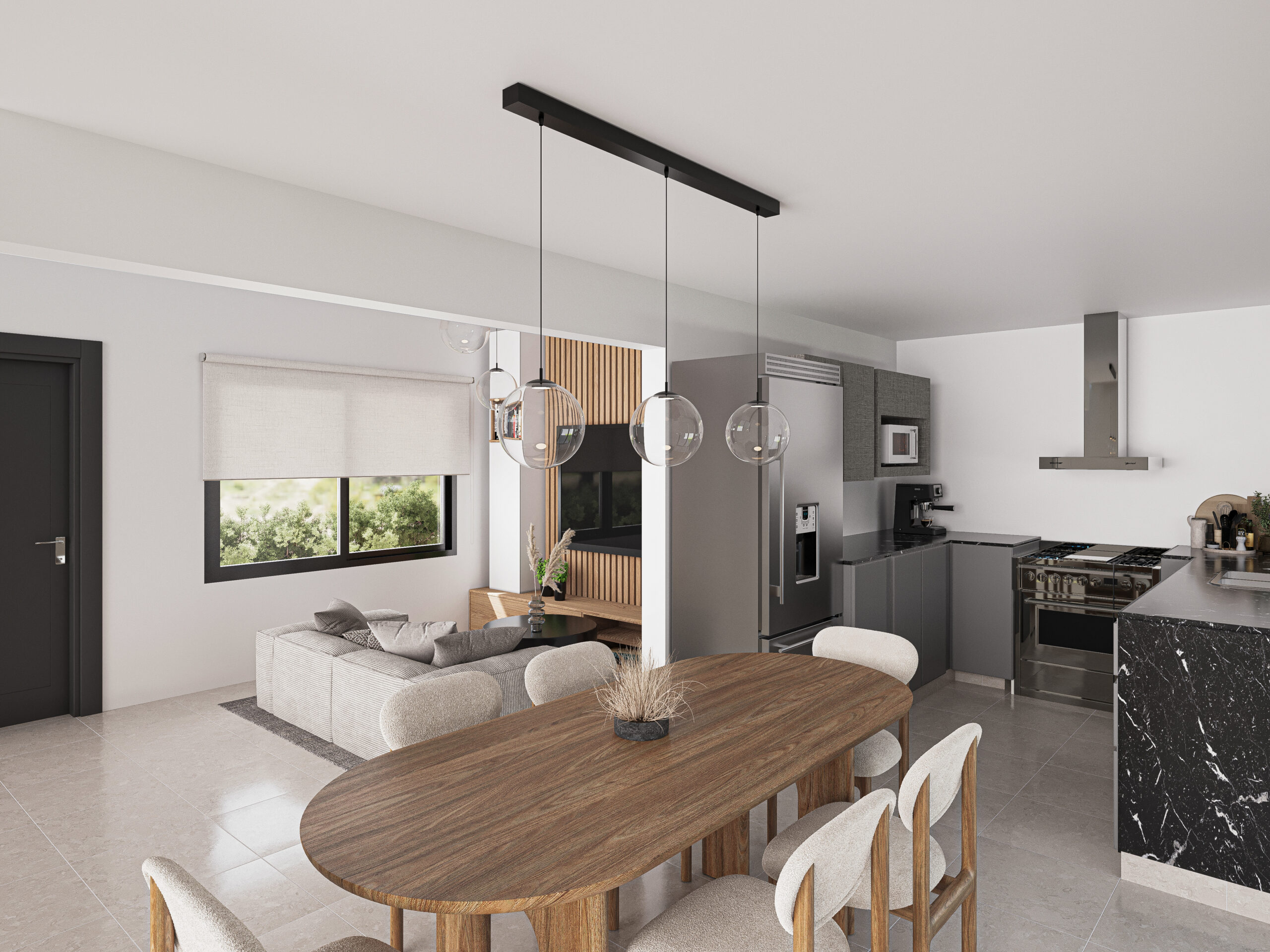 COCTA 13 es un conjunto de tres unidades de vivienda ubicado en un terreno en esquina de 432 m² dentro de Docta Urbanización, Córdoba. Cada unidad fue proyectada con criterios de funcionalidad, privacidad y confort, aprovechando al máximo el terreno. Las viviendas cuentan con estar comedor de doble altura, cocina integrada, dos dormitorios, un baño, patio con asador y cochera semicubierta. En una de las unidades se incorpora un escritorio adicional, ideal para el trabajo remoto. El diseño combina líneas modernas, ladrillo visto y volumenes sobrios, con una estética cálida y actual. Proyecto integral diseñado y ejecutado por Grupo Concret.